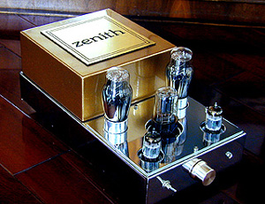 这个前级最大的特点是用了两只古董级的RCA公司1932年前后开发和推出的230直热三极管。据厂方资料说明,主要用于雷达、无线电接收机等小信号电压放大,参数曲线非常完美。围绕这两只管子的使用,老雷进行了仔细研究和推敲,最后决定用两只美国GE公司的5814作缓冲,采用双单声道、作单端直热直耦设计,采用6X5和两个扼流圈以及半导体元件作三级混合整流稳压。其结果是动态范围宽裕,音色高贵、通透,高低频两端延伸极佳、微动态和临场感、细节表现超群,信噪比接近高档机的水准。据其介绍这台前级的指标为:输入阻抗500KΩ;输出阻抗220Ω;输入电平,0.2-7V;输出电平,2-70V;频响,10-20000Hz,±0dB;谐波失真<0.3%;信噪比,94dB。