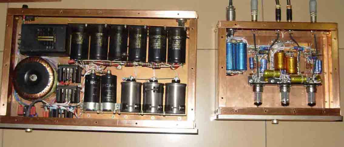 (作者:LDH 时间:2004-07-16 22:59:53)- 1,在高压部分的退耦电阻最好不要使用碳膜电阻。2,滤波电容看体积容量都不小,建议最后两级换成MKP电容,容量在20UF左右即可。看图好象使用了三只油浸电容估计是并联在电解上的。作用不太大。