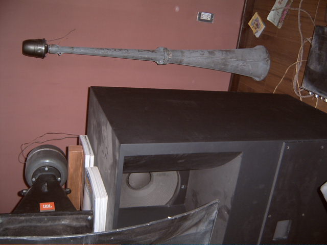 (作者:LYW 时间:2005-06-01 10:01:31)- 号角的频率下限有500HZ--,800HZ--,1200HZ--不等.图中JBL号角的驱动头的频率下限应是1200HZ--的,长号角的频率就更高了,但只要搞好分频点,经精心调校,还是可以听到号角独特美妙的空灵、现场感.