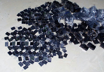 (作者:ldh 时间:2002-09-08 13:00:55)- 管子配对成功率要看产品的批次,厂家,具体型号而言。我使用的日产东芝对管,3%的配对成功率大约为20%多点。剩余的管子暂放一边,等再次进货时再次配对。现在手中也已经积攒了大量的这种“单身贵族”了。见照片。