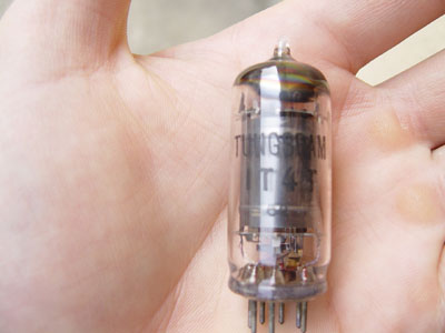 不过电子管都是什么FU-50,FU-7,FU-15,WY-3P,6JI,6P15,6P1之类的东西,都是新的,真他妈的,怎么就没有WE300B呀,也发现几根进口的,不过都是用过的,玻璃上的字都没有了,其中有一跟的管坐上写者 “RCA VICTOR”字上面是两个圆圈,一个圆圈里是“RCA”,还有一个圆圈里竟然是小狗听留声机的图,感觉比较希奇,不管有没有用,收了先,其他的就都不高兴拿了,