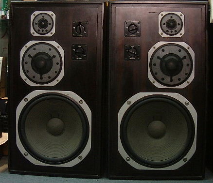 他多年在市文化器材公司工作,曾任至总经理。10来20年前那可是权威机构,几乎所有进口的舞台和家用音响设备都是经那里出来的,我们那时候有空都喜欢跑到中山五路儿童公园旁的门市部饱饱眼福。这里还有一个小故事,80年代中后期他们引进本地第一台CD机(好象是飞利普CD1000)并为此隆重地开了一场大型的HI-FI SHOW,不过开完SHOW的当晚CD机就被小偷偷啦,不过偷到了却不会用,那家伙是大笨贼笨到头了,居然打电话市文化器材公司去问用法,当然是自投罗网啦,最后小偷为此坐了好多年牢哦。。。他于十年前就开此试制音箱,工作的方便,对录音监制认知和兴趣,他喜欢用JBL的监听级单元做箱,对JBL的特性十分了解,并且在运用上寻求了突破。JBL公司50周年大庆赠送了一块金牌,上书“JBL的今天有您的一份功劳”。他十分喜欢做多路的大型音箱,他认为现在的音响器材为了有更细腻,更高贵的音色,都在高音部分做文章,反而忽略了真实音乐应有的平衡度和动态。好些号称中型落地箱的声音甚至乎就象小姑娘似的,要知道大型交响乐都是三管乃至四管编制的百人管弦乐团,强奏时的能量和激情,那小音箱如何能表现出来呢?