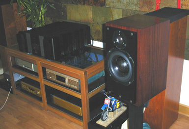 (作者:li 时间:2002-08-28 11:03:05)- 听过的几个朋友都被它那大食无伦所吓倒,300s在播第一鼓时几乎是满功率输出!散热片热得吓人。我的一个不是发烧友的朋友却对它一见钟情,拿回去用马兰士PMK-700来推。因为房间较小所以竟也听的有磨有样。