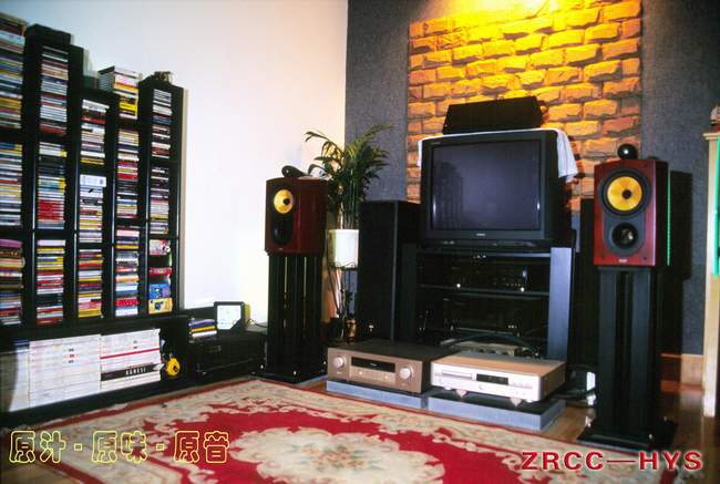(作者:zrcc_hys 时间:2002-07-24 12:05:36)- 后面确是文化石,四边是壁毯,“软硬兼使”。CD柜系自行设计,高高低低错落不同,颇似均衡器上的电平指示器,因为自已是搞美术设计的,因此对造形、色彩讲究些,但必须在好声的基础上......