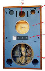 从根本上来说,这种BBC两路监听箱的设计,到了最后的校声阶段,是非常经验主义的。可以说,基本理论的指导固然必不可少,但英国人的审美习惯,那种内敛,矜持,务实,不事张扬的作风,对“BBC声”的最后定型,是关键的因素。拿那几种著名的BBC箱来说,无论3/5A围绕高音单元的毡子条,还是SP100低音单元上手工涂抹的粘胶,TABLETTE倒相孔中的饮料管。。。到处可以见到很“土”的,很信手拈来的校声痕迹。至于内部分音器的复杂补偿,箱体的厚薄,谐振的多寡,处处是反复斟酌的结果。可以想见,设计者当年是怎么殚精竭虑,不择手段的追求自己理想中的声音口味。而一旦得之,就再也不敢触动那精妙的平衡,就此定型为成品,哪怕外观再朴拙,也在所不计。