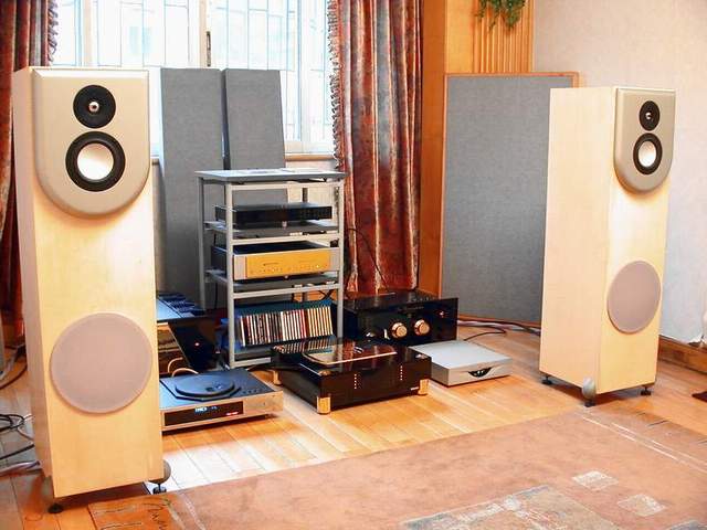 全套Sonic Fronteir 顶级前后级功放LINE3/POWER3加解码SFD2MKII(配顶班力无敌CD机转盘)伺候REVEL F30在不大的环境里反倒是有模有样. 后级两条NBS Monitor 0 电源线增加胆功放速度力度, 前级范登豪电源线整形增加透明度, 别有一番滋味! F30也有高音不强一说, 但这些顶班胆机却能搞的它们细腻迷人, 而且由于箱子本身的特点在那里, 既有清胆机的斯文优雅但绝对不小家子气. 主人家很有意思, 装修房子用料过猛, 试箱子无数, 结果F30成了能在他家唯一有低音的箱子, 调至今日, 终有所成!·