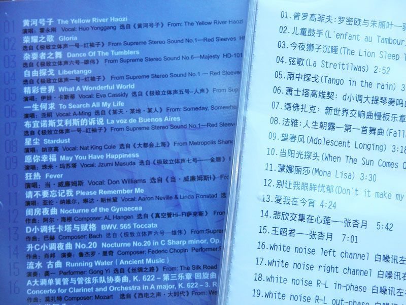 两张碟都十分精彩! 录音制作水准也是高水平的,为历届音响展纪念CD音质最优秀之一.就为这两张唱片也值得大家前往观瞻! 斑竹极力推荐!