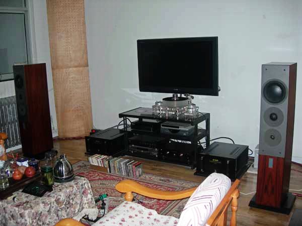 yun0251兄的空间虽然不是很大,但C5却能搞好出个象样的,低频下潜好且扎实的空间,这非常得于频率特性非常平直的音箱,我听到了很多碟片中信息量,试听了几张编制的协奏曲CD碟,以前听过这些唱片,最后面的两层小号,法国号、打击乐等乐器的解释没这次在yun0251兄听到这么透明和看得见有明显的位置,解释得一点不差。在这里CD 拥有全频段最完整的『动态』正确性;和最完整的『相位』正确性;LDH旗舰放大器功不可没.
