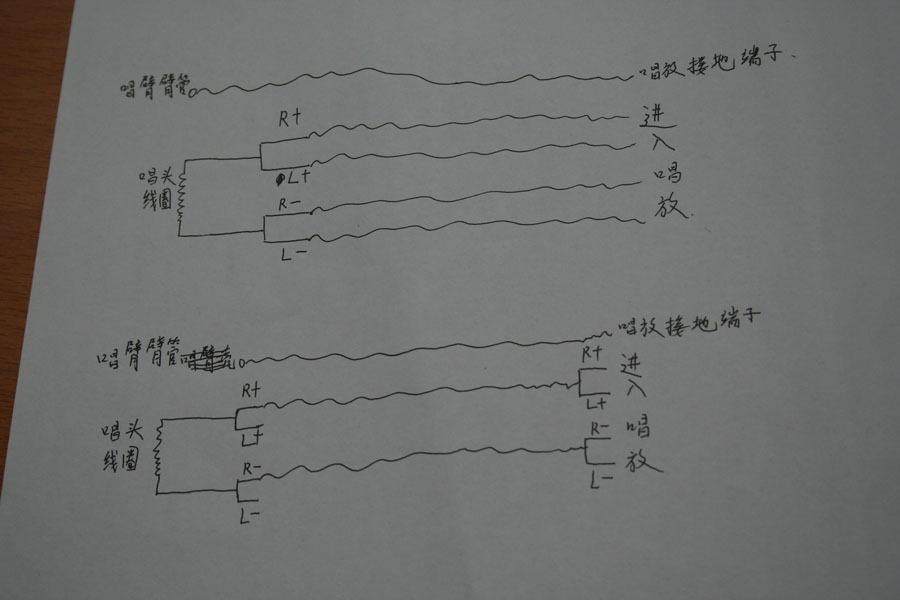 (作者:合肥蒋鹏 时间:2009-10-24 07:17:39)- 一般认为正确的接发应该是:唱头的线圈接唱放的任意一个声道,然后该声道输出接入前级某一声道,对应的输出分成两路接入后级