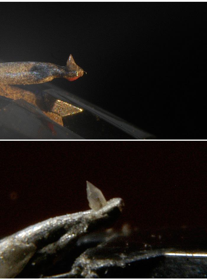 图,上面的是脏的唱头,下面的清洁过的(照的不好,请多原谅了·