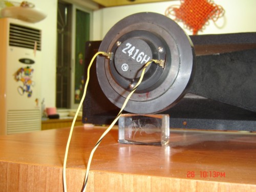 (作者:wyj_icbc 时间:2005-09-25 21:36:36)- 经各位指点,我已加上一个号角超高,喇叭为飞乐用JBL振膜生产的YDQG30-2高音,直上25K,加上略小于上图的号嘴,串0。47U电容。借到相机再上图。