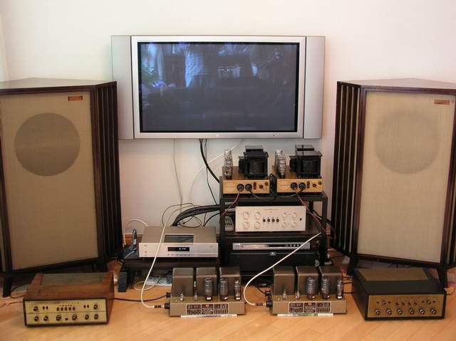 我也试着用不同的器材搭配过不同的天朗,总体感受,大系统用小功率胆放听小品,听弦乐和人声很好,听大作品就非大功率不可.我用麦景图大功率胆放推出的声音连天朗代理听后也感叹道:还未听到过如此好的声音.反正现在经常用大功率搭小箱子,小功率推大箱子,换换新口味,找找新感觉.总之,多试试、玩玩没错,这也是一种乐趣。每当自己搬累了,玩累了,坐下听听、看看,花了很多辛苦,很大精力收集来的件件经典器材,那种苦与累顿时化作一种自我满足感。也许这样好动、好奇、好玩是造就另一类的发烧友吧。- 我曾记得某本书上说过:听天朗大系统音响就好比是窗外下着雪,一家人围坐在屋内火炉旁,喝喝茶,聊聊天,很温馨,很有一种家庭氛围.那种温情与感受是其他一般音箱所没有的.这就是天朗的特性,也正是这种温暖感吸引我,让我非常喜爱.难以割舍.