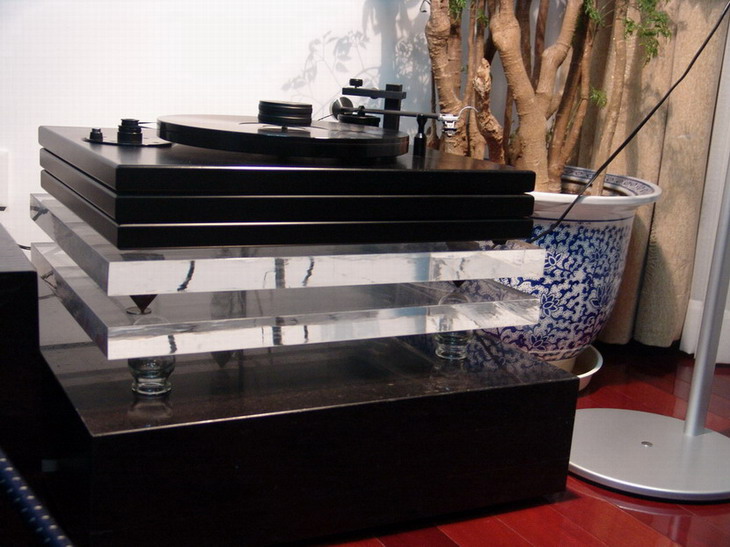 因为是木地板,特意定做了15CM厚的花岗岩用以避震,效果还不错。