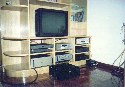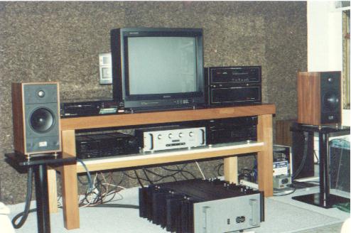 听完了JBL 4345后结果令我步入音响厂家及商人布下的天罗地纲, 永远没有返身的机会.当年刚出社会做事,身边的朋友大多没有经济能力的,只有其中三个朋友对音响有兴趣,经参考及现场试听他们的所谓高级器材后(如AR28,Bose301,Luxman,三菱,Techice)”储了四个月子弹,”登登登……邓”天龙木石英控速LP+SAEC-407臂,Shure 唱头,SAE Two A-7供放, 扬声器?听完4343中毒肯定买JBL啦! 4301b也.當年的處女組合, 以當時的感覺肯定是不錯的, 這套組合陪了我幾年, Hi Fi的,當年玩AR,JBL,BOSE,箱,玩三菱,Luxman,Kenwood,ONKYO,Technics,TEAC供放在一般人心目中巳經是發燒友.試想一?當年一包萬寶路香煙才$4.5元一層125平方在寶馬山頂的房屋才賣40多萬.我記得當年我在4星級酒店當服務員一個月才有1200工資,但當年要買一對JBL4301b就差不多要2000大元了!還記得當年ONKYO初推出M510前後級(第一代黑色那部)在HI FI店看到,口水大流.回說SAE Two A-7供放推JBL 4301b的聲音,印象中聲底比較粗,音?,定位都不知有沒有(因當年根本不懂何謂HI FI.)但低音,和JBL獨有的那種臨場真的不錯.還記得聽松武秀樹的電子Music,正!!這個組合陪我過了二年多,終於因一個不小心……………女友……………….!!!無法啦!結婚生仔是人生必經的,但早了一點,結果……….!全部出售!往後的幾年Hi Fi,LP!!!有錢都要買屎尿布,奶粉啦!但我對Hi Fi的熱誠??頉]有減退過因為我熱?垡魳?在這段期間我經常去轉HI FI店留意各品牌機種.努力辛勞的工作幾年,終於還境好轉, 到1986年, 結識了一個朋友呀明, ?乃?谥械弥?芏嗪芏嚓P於HiFi的知識.?K且結識幾位發燒新丁,又剛好我姐姐因搬家新屋無法放他的那對天朗10b因此而送了給我玩,於是…. 燒起?砹?. 當時曾玩過的機有: