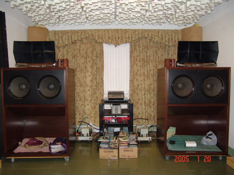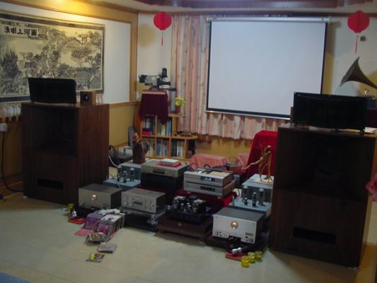 坐下,泡荼开声, Marantz7+9+AltecA7播出布兰诗歌,声音宽松大汽,蔡琴歌声散发出60年代独有的尘封味道,玩得果然有点功底,但A7也是难玩的怪物,7+9中高巳不错,无奈中低部份箱声较重,低频析力较差下潜力不够,这和Marantz 9只玩三极有莫大关系(只有30W输出)但在50平方房间中听人声和小品古典而足够.洞主也知情况,巳建成的西电845将会在系统中付责推低音,嘿嘿 Marantz 9推高中,845推低,高手耶!(不过好易玩到一头烟)