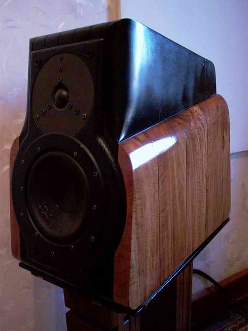 绅士宝(SCANSPEAK)8545K,是有名的皱皮波。需要特别指出的是,我这对是原厂带涂层的,与市售的8545有根本的区别。当时还有几款下级音箱也采用8545,但都不带涂层。为此我专门问过老板,他说这一对是以前联合几个买家直接从丹麦邮购的,剩下的不多了,现在有些8545据说是珠海产的,根本不能比。原木音箱也值得说一说。最好的木头做的旗舰。 全缅甸老黄花梨接隼。音箱是用老黄花梨做的,在我家两年多已从最初的深黄色变为浅红,老板