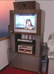 ??第四:本公司的最新一代MTV合成机的机柜放弃了以往不受欢迎的游戏机外型,改用更有亲和力的家具式的外型,并可以根据客户的喜好来设计机柜。??