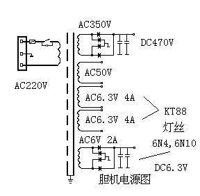 子(6N1× 1、6N10× 4)由经过整流滤波的6.3V直流供给,五支管子