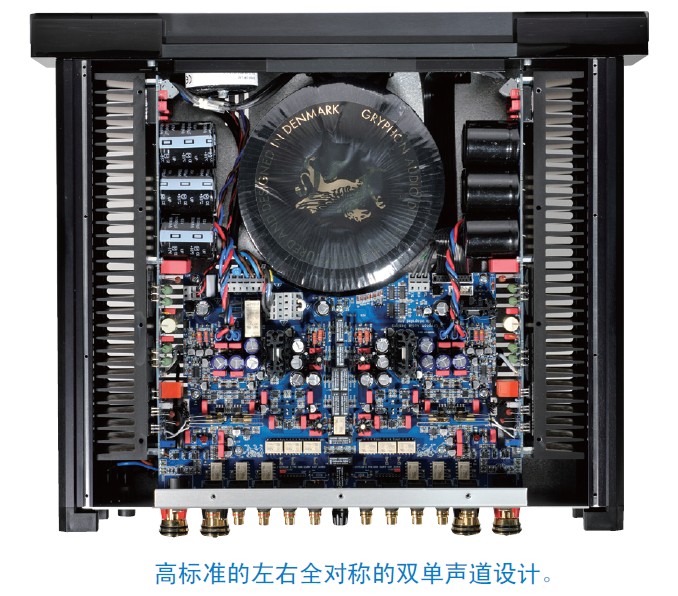 立安装在两侧的散热器上。虽然音频电路只使用一只变压器,但严谨的Gryphon 设计了左
