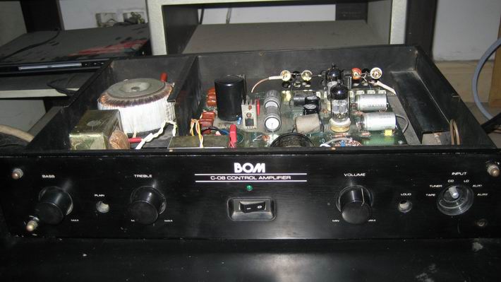 这台胆前级线路就是SRPP,两只管子是6N11,我用的是德国的西门子金角ECC88.RCA信号做