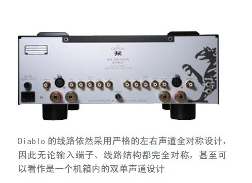 功放。先不管这话是否当真,我们从声音表现还是能看到Diablo的确是Gryphon充满诚意的