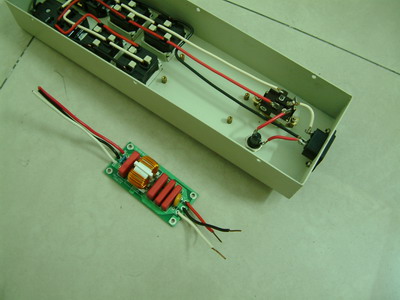 滤波器的后端三条线接到照片中插座前面的一排上,也是红色对红色黑白色各自相对应即可。