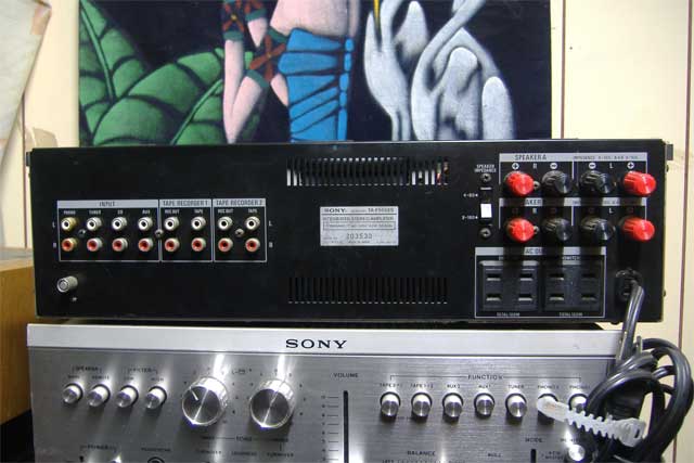 刚入手了一个索尼555ES功放,没有说明书。请朋友们说说功率参数。后面接线方法。