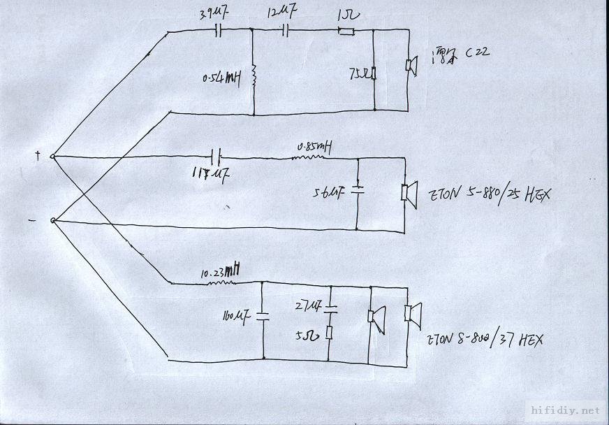 有一对ARES 3的的箱子 高音漂尔 C22 中音 ETON 5-880/25HEX 低音 双ETON 8-800/37HEX 并联