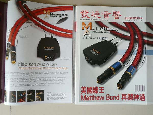(作者:ZHAO 时间:2010-11-26 11:16:15)- 美国Madison Audio Lab隆重宣布,由2010年6月1日起,委任超时空远东有限公司为中国(包括香港.澳门地区)之总代理. Madison Audio Lab(麦迪逊音响)由世界级著名发烧线材设计师Matthew Bond创立,以超过20年造线经验创制出e3Extreme顶级发烧线材,选用UA-OFHC多重退火无氧高热导率纯铜线芯,铁弗龙绝缘体,高效屏蔽层,配有SGP星形地盒, 雍有高超音效,超阔频宽及准确相位与振幅序列三大音响特性,表现卓越超群,而售价非常克己,令发烧友喜出望外