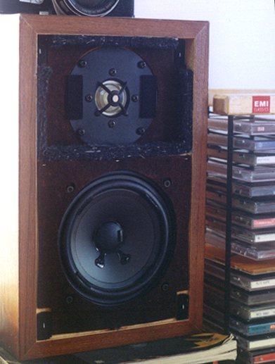 居然是SONY的,型号 SS-A1L,密封箱,体积和3/5A 差不多,阻抗4欧,功率40-120W。拆出来看,里面全是黄色的绵,前面板和后面板是合木的,高音喇叭比低音喇叭的安装平面后一些。中低音喇叭的悬边还贴着东西,真怪胎。分频器很复杂,搭棚制作的,没印刷电路板。