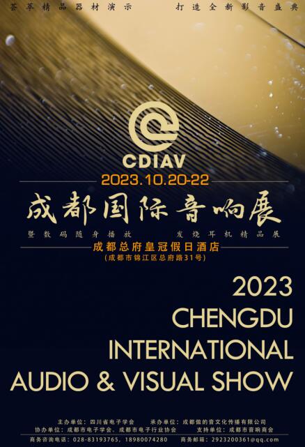 成都国际音响展(Chengdu International Audio&Visual Show)是西部地区一年一度重要的影音盛会,由四川省电子学会主办,成都市电子学会、成都市电子行业协会协办,成都傲的音文化传播有限公司承办,成都市音响商会为支持单位。