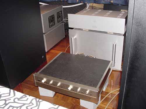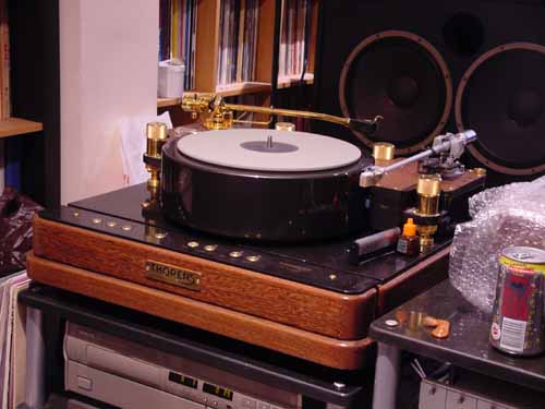 近?硪蛲鍶BL的關系,在港認識了一羣志同道合的燒友,在國慶假期小弟到香港家訪一位大燒友,一進他的發燒房……..!我的媽呀!比我還傻的人呀!在15平米房間玩一對JBL雙15吋低音,375中音(24吋抗散咀),075高音.全套Cello推.金嗓子三路電子分音,菲利蒲LHH 900 CD,Tho頂級唱盤……….!像日本仔般把器材放在皇帝位面前.後?及兩邊放?MLP,CD,唱臂及其他收藏器材.