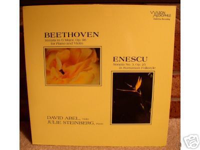 WILSON AUDIO的音箱可能是音响迷一生追求的目标,我也不例外。在没有享有WILSON AUDIO的音箱之前,听一听他家的唱片同样是莫大的享受。WILSON AUDIO出品的唱片数量很少,但张张是精品张张是极品!我珍藏的这张编号为W-8315的LP,A面录有贝多芬1812年创作的第十小提琴奏鸣曲G大调作品96号,这首作品是献给Rudolph Written大公的,首次公演于1812年12月29日。 B面是不常见到的艾乃斯库第三小提琴奏鸣曲作品25号。小提琴演奏是1935年出生在美国华盛顿的大卫阿贝尔,他在室内乐方面有着很高的造诣。钢琴演奏是身材修长的朱莉斯特博格女士。这张LP于1983 年发行. 现在早已绝版,我为我拥有这样一张LP感到非常幸福和骄傲。同版的CD编号为WCD-8315,您如果还没有这张CD的话,赶快跑步或打的去买一张,它是发烧友的教科书,反复、认真、用心的去“阅读”(听),它会教会您很多。我们的音响器材要升级,我们的发烧头脑也要升级!