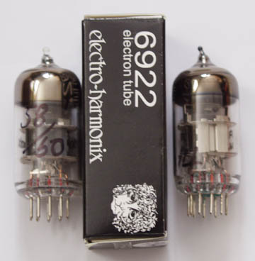 从构造上看,Sovtek 6922和 Electro-Harmonix 6922一模一样。只是里面的那金属颜色不同。图中右边的是Sovtek。里面的金属是发亮的。听说Sovtek和Electro-Harmonix是在同一工厂中生产的。