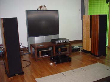 跟着上场的是西雅士版的黄氏箱。接好线一开声,粗、干,简直与大头虾家听的两回事。我们议论时,自文一声不响埋头移箱,由左到右,由后到前,嘿,好位置真给他找到了!没错,与在黄生家听到的一模一样,浓烈的现场感,真实的乐器声,大头虾的一句话代表了:“它使你忘记是听音响”!更难得是高音有信心5号6成的幼细,或许是MBL5010D的功劳吧。大头虾很喜欢这把声音,他开心的笑了!是啊,黄氏箱在宽大的环境下有很好的发挥。