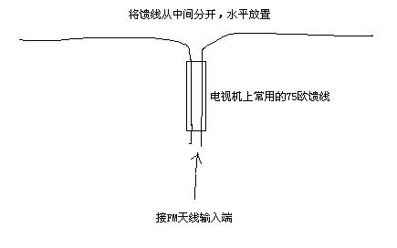 (作者:卜算子 时间:2003-03-03 01:15:53)- 按照图所示的方式制作一个即可,效果不错,是最简单的半波振子天线。每个劈开的长度约70厘米。