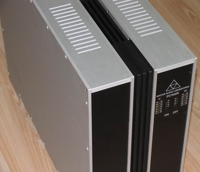 (作者:masterli 时间:2010-08-12 20:24:14)- 分体设计,左侧为供电和控制部分,中间位散热器,右侧为信号处理和功率放大。