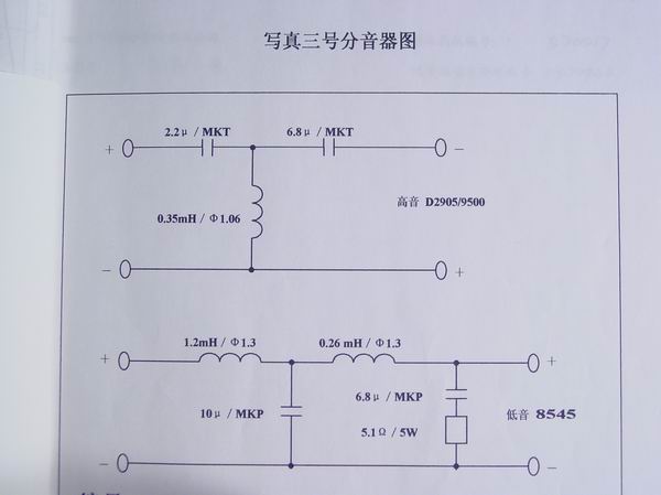 最近入了写真3号mk2音箱,初听了一下,声音正如LDH版主老师所言,声音闷在箱子里面,很难推出来,想请教LDH版主老师的关于该箱分频的摩改方案,请LDH版主老师不吝赐教,顺便上写真3号mk2原厂分频电路,