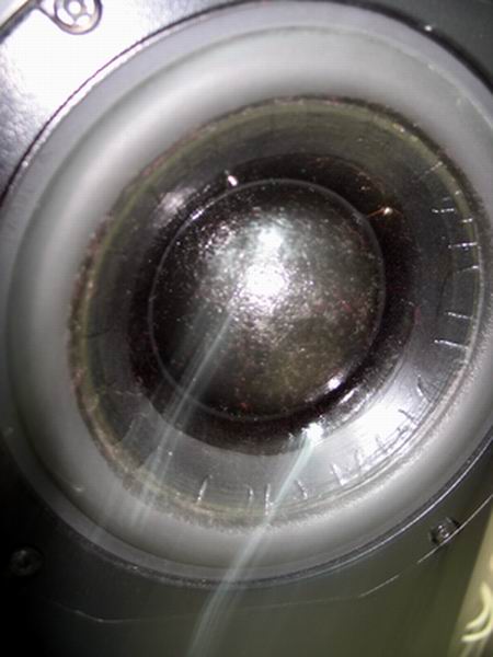 (作者:LDH 时间:2011-03-12 10:49:22)- 早期的ATC20单元有部分是纸盆的,在长期大冲程的受力下,会出现靠近橡胶边部分的振盆纵向折痕,这批货号的单元来到现在几乎都20多年以上的时间了,除去振盆有折痕外,中间的馒头防尘罩涂覆的阻尼胶基本都已经干枯发白,橡胶边也由于时间的老化出现环状的不规则的细小的纹理痕迹。