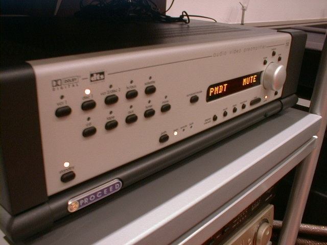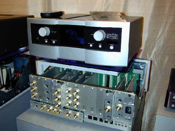 Mark Levinson 于2001年下半年推出了no.40 media consle(但是成品,用户却还要等到2002年上半年才能拿到手,我的这一套在2001年10月订货,2002年6月才到家,真辛苦)。no.40 分为audio,video两部机,audio与video之间采用一条RJ11电话线来连接通信,同步操作。分体的原因是为了更好声,视频的频率太高,合在一起的话会影响audio部分,怎么弄也不会有好声的,如Bryston出的sp1 环绕处理器干脆就没做video部分(2000年的发烧音响曾写过一位在加拿大的华人,他玩过多部环绕声处理器,这是唯一一部在analog两声道上超过krell-krc3前级的环绕声处理器),柏林之声的007环绕处理器也一样,没做video部分。Mark花了几年的时间尽一切能力制作了no.40, 完美无暇,唯一可挑剔的话,还是那句话:太贵了! no.40定价三十三万港币,折实包括调较费用也将近30万人民币。