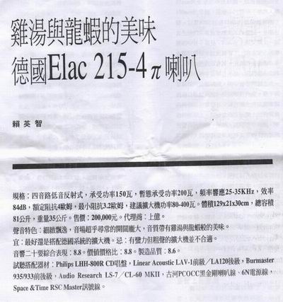 (作者:cfcfc 时间:2002-08-20 10:35:51)- 另外,音响论坛对215的评价相当不错。