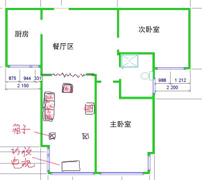 (作者:sword 时间:2002-08-29 14:03:49)- 鱼兄,本人在建设行业地干活,红色的线代表活动墙,不是忘了门,看烧录兄的房子款式还是蛮新的,结构不象板式高层,所以,分割墙顶部会有圈梁的,因此不用太害怕,我也在上海,虹桥世贸商城,烧录兄的房子在哪里?告诉我可以给建议。