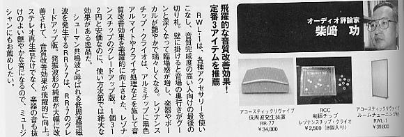 (作者:penpie 时间:2002-08-26 00:28:46)- 上面这件产品是这个月日本音响杂志audio accessory上介绍的东西,他们的产品介绍是这样说的:"负离子发生器改善音响环境的效果是惊异的,这是音响理论完全没有接触的现象,室内空气自身的性格和水准会改变。",还说能保持人和器材的健康。我觉得这是瞎掰。