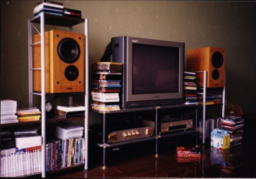 前几天,我曾听过一场龙虎斗,B。WN805大战雨后初晴HL-5(雨后初晴的经典箱俗称5号箱,8寸PP低音单元),功放用马兰士PM-14,钟神JA100,CD为CARY303,用14推805感觉除低频速度稍慢外,各方面表现还是不错,然而用14来推5号箱明显感觉功放不够班,电位器过了12点低频还是出不来,而高频有些失真,离箱感很差。接着功放换上钟神JA100,首先推805,与14相比力度明显好许多,不愧为纯甲类100W,低频速度也更快,听《阿淘的歌》,中低频的分析力,质感也高14不少,但高频就不及14舒展,细腻。音箱换上5号箱表现与刚才14推简直是两回事,首先绵实,有力的低频把接近30平方的房间填得满满实实,中频明显是5号箱的强项,厚润多汁且不乏解晰力,高频延伸不算很好,但很细腻动人,一派纯正的经典英国声,相当耐听。唯一的遗憾是没找到合适的脚架,所以5号箱的成像显得有些松散。