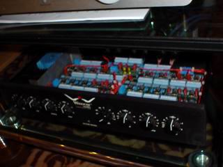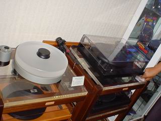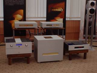 (作者:麻油面 时间:2002-08-11 17:10:17)- 最上面是转盘,中间是M3升频DAC,16BIT/44.1KHz入24BIT/192KHz升频解码,下面是由M3改进来的新型号,功能一致但据说声音要快点,M3现在只售7000多RMB,还是有一定超值能力。