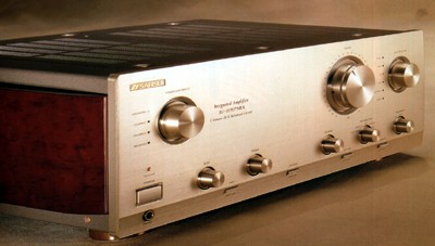 今天掏到一台80年代的山水功放,本来是看中了这台功放的唱头放大器制作的相当考究,有1MV、4MV、8MV电平输入选择,适合MC、MM、不同唱头不同电平的需要。有唱头输入阻抗选择,分别为10K,30K、50K、100K。 对其花里胡哨的面板控制功能甚为反感,对其声音也没有什么期望值。