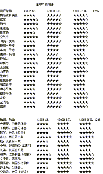 交响乐:老贝《命运》 ★★★ ★★★★ ★★★★- 测评指标 4300B SE 4300B BTL 4300B BTL -12dB