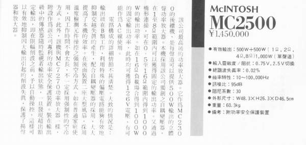 The Mclntosh MC-2500 Information