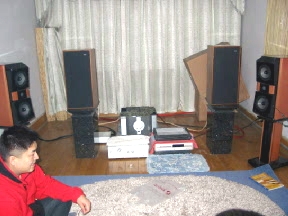 Spendor的用家付先生带了自用的牛师傅胆机(很便宜的一款。20W功率,一千多元)。在我家里接上CD14,喇叭线接上红衣主教和122,信号线用VDH合金线。随便的一摆就开声:吓了我一跳怎么没高音,全频声音怎么这么暗!刚开始还以为这是Spendor的声音特色,过了一会儿,付生走到箱子后把两款线(双线分音)掉了个个,来了!高频亮了起来,声音不再蒙了。先用我的Ayre K1x和Pass X350推Spendor 1/2,声音淡定自如,一派英国声传统声底。很明显的能听出来Spendor的箱音很重(这队儿箱个头不小,但分量一般,只比我用过的卓丽一仔重一点点),也是我第一次领略Spendor设计师用箱音调声的奥秘。Spendor箱子给我的第一印象就是:1、它的发声真的叫轻松无比!好象是自然流淌的溪流 一样。2、HiFi分数一般,但一样也不缺,样样给齐你,但都只是适可而止。最突出的:音乐性真好!3、Spendor的声音平衡度作的真不错!没有抢耳的高音,中频有适中厚度,低音蓬松耐听。