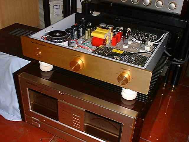 (作者:木子。 时间:2002-02-08 09:19:01)- 另外,耦合电容也换成了红WIMA,和原来用的solen相比,声音的延伸好一些,中频聚焦更好。从那4只西门子金脚CCA的寿命考虑,我将灯丝电源和高压电源分开,可先开灯丝预热,再开高压;两部分电源余量取得非常大(7-9倍),即使开机一星期,电源变压器都是凉的(我父亲看了说,你们这些发烧友真是过分,浪费资源,呵呵!),信噪比也有质的提升。目前这部LDH前级我非常满意,无论中频的厚度、高频的延伸和整体的动态,配我的安桥M510后级都很好。